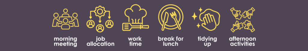 The canteen is a busy working environment with lots of opportunities to learn and grow. With the support of experienced staff, our Members receive training in a range of catering and hospitality services. The canteen employs Members who achieve a high level of skill in food preparation and service, providing valuable opportunities for growth and professional development.